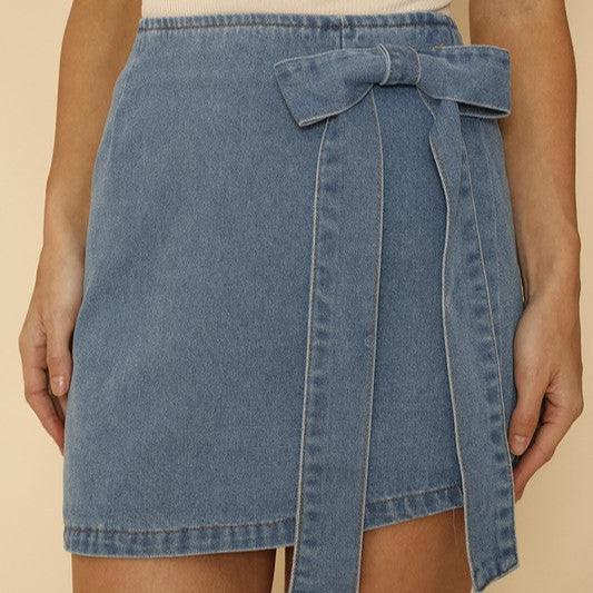 Bring a fresh twist to your wardrobe with our charming denim skirt, perfect for sunny days. This skirt features an asymmetrical hem that adds a playful touch to its classic silhouette, while the bow on the side of the waist provides a feminine flair. The zipper closure at the back ensures a snug and flattering fit. Whether you're heading out for a casual date or a picnic, this skirt pairs effortlessly with your favorite tops for a look that's both stylish and comfortable.