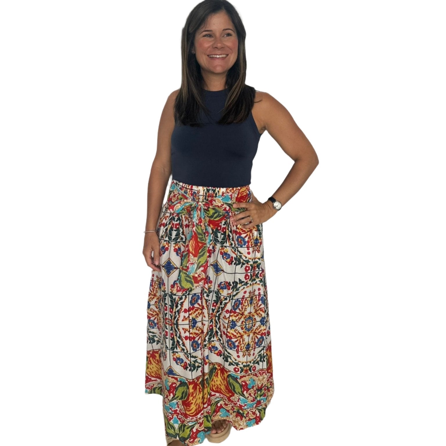 Elevate your wardrobe with the Henida Pants, where comfort meets contemporary fashion. Made from a lightweight material, these pants offer a breezy, wide-silhouette that ensures both comfort and a flattering fit. The vibrant mix of lemon and Santorini prints injects a burst of color and playful charm into any outfit, making these pants a perfect choice for brightening up your day. Versatile and stylish, the Henida Pants are ideal for a casual outing or a more dressed-up event, easily paired with a simple top or a chic blouse. Refresh your style and make a statement with this delightful addition to your clothing collection.