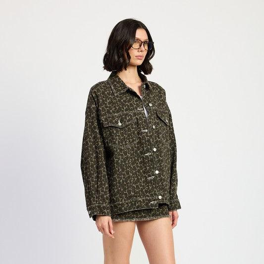 Elevate your outerwear collection with our Cleo Oversized Printed Denim Jacket, a must-have for any fashion-forward wardrobe. This jacket features a stunning grey leopard print that brings an edgy twist to the classic denim jacket. Its oversized fit ensures a comfortable and relaxed style, perfect for layering over sweaters or tees during Puerto Rico's cooler seasons.
