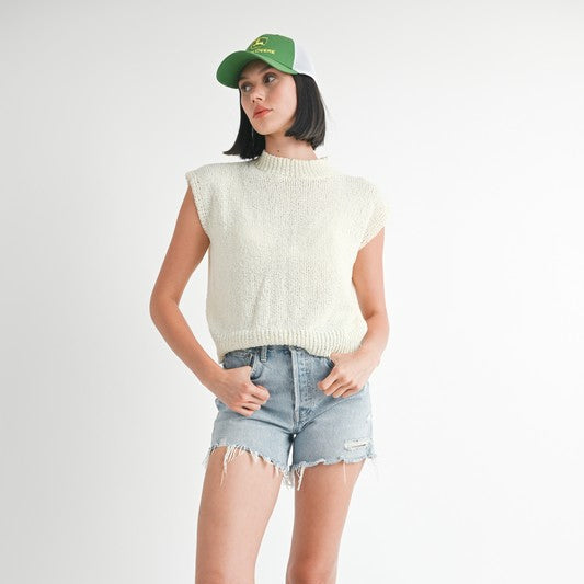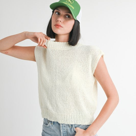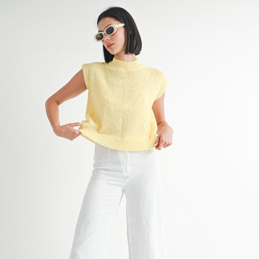 Introducing the "Sunny Hues Sleeveless Sweater," a chic addition to your wardrobe that perfectly captures the essence of spring and summer. Crafted in a soft pale yellow or off white colors, this top adds a touch of sunshine to any outfit. Its comfortable, sleeveless design makes it ideal for warmer days or for layering under a jacket on cooler evenings.