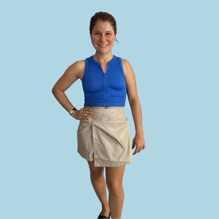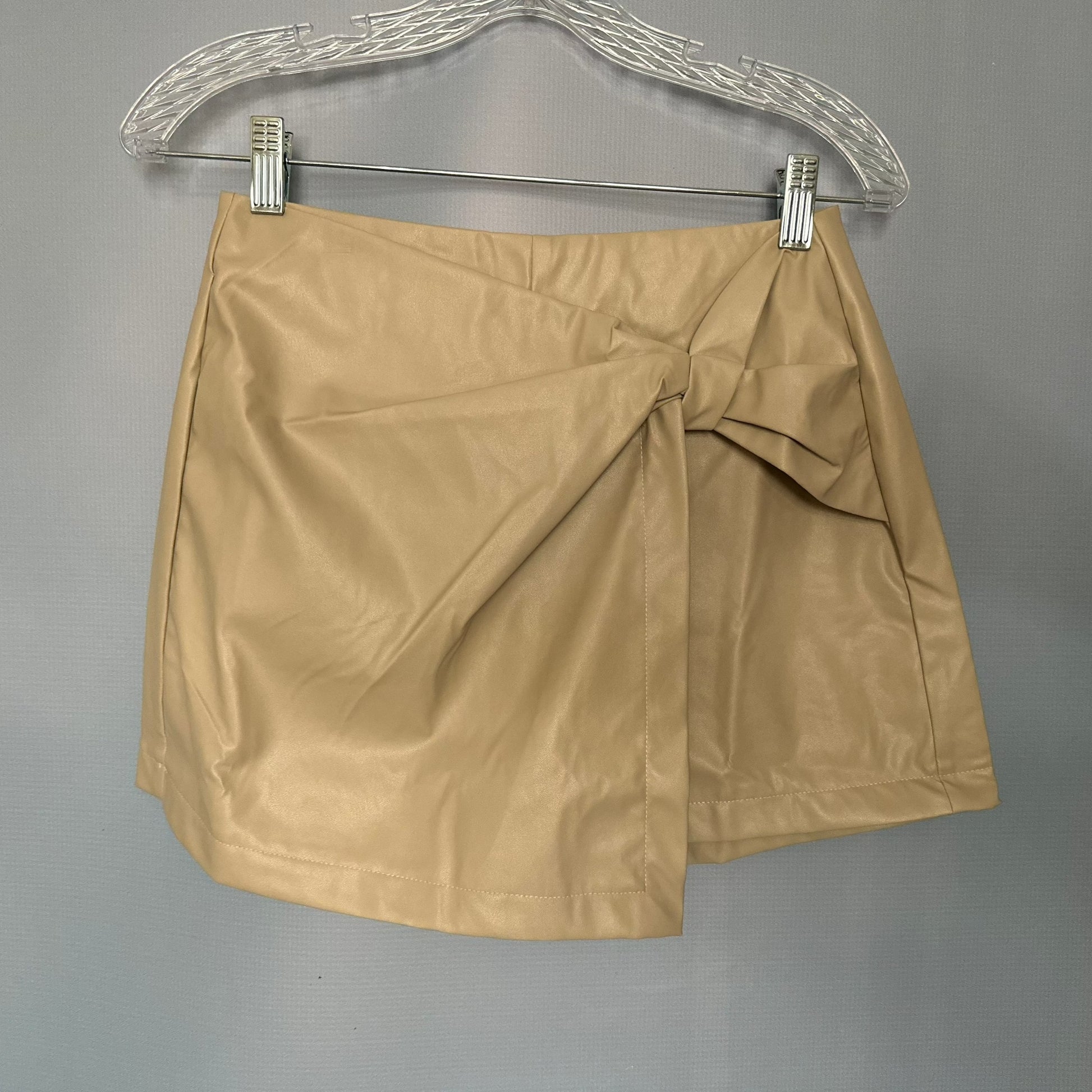 Taos faux leather skort featuring front twiste detail and back zipper closure.